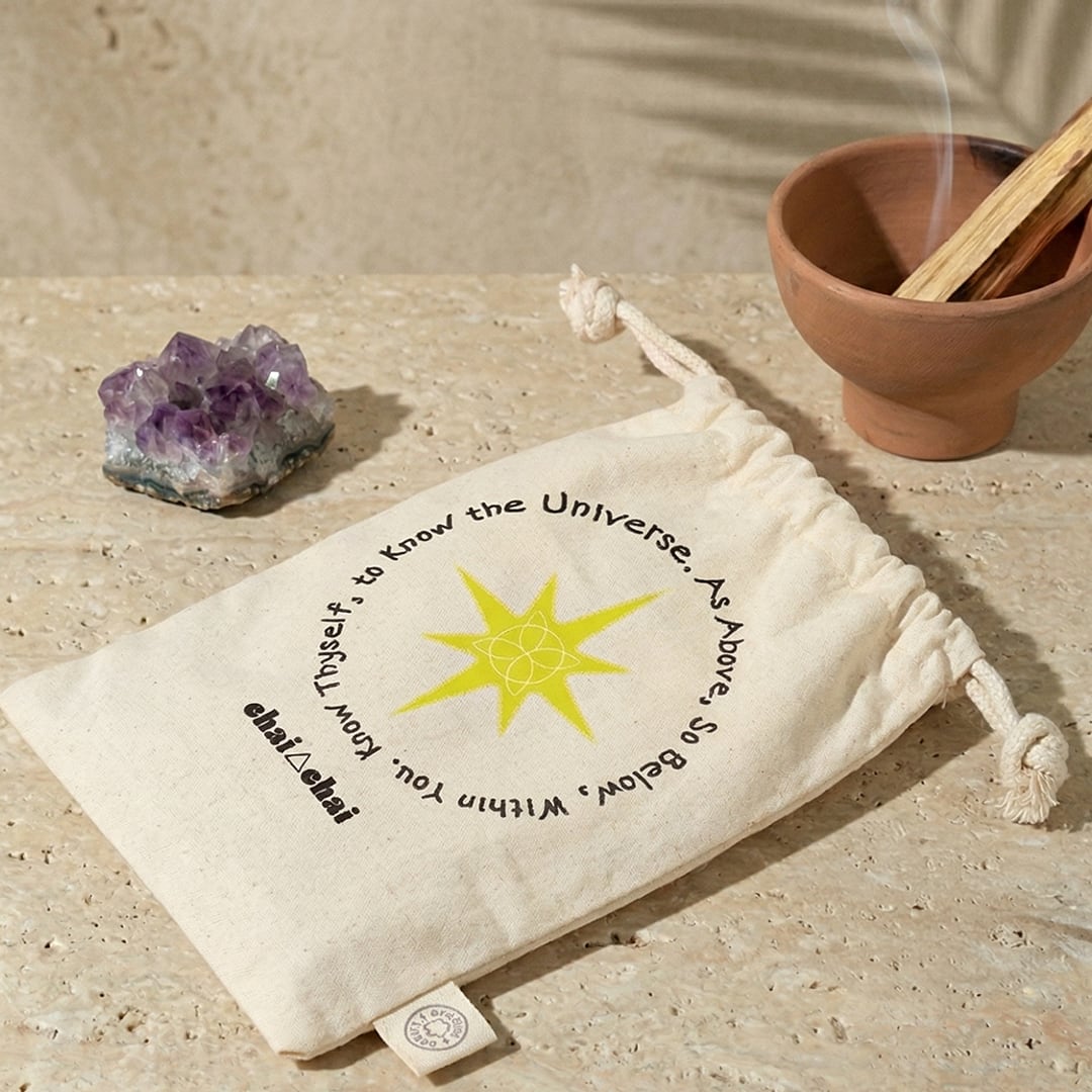 使い終わったあとの巾着は、タロットカードがすっぽり入るサイズなので、リップや鍵など、カバンの中で迷子になりがちな小物をまとめるポーチとしてお使いください。